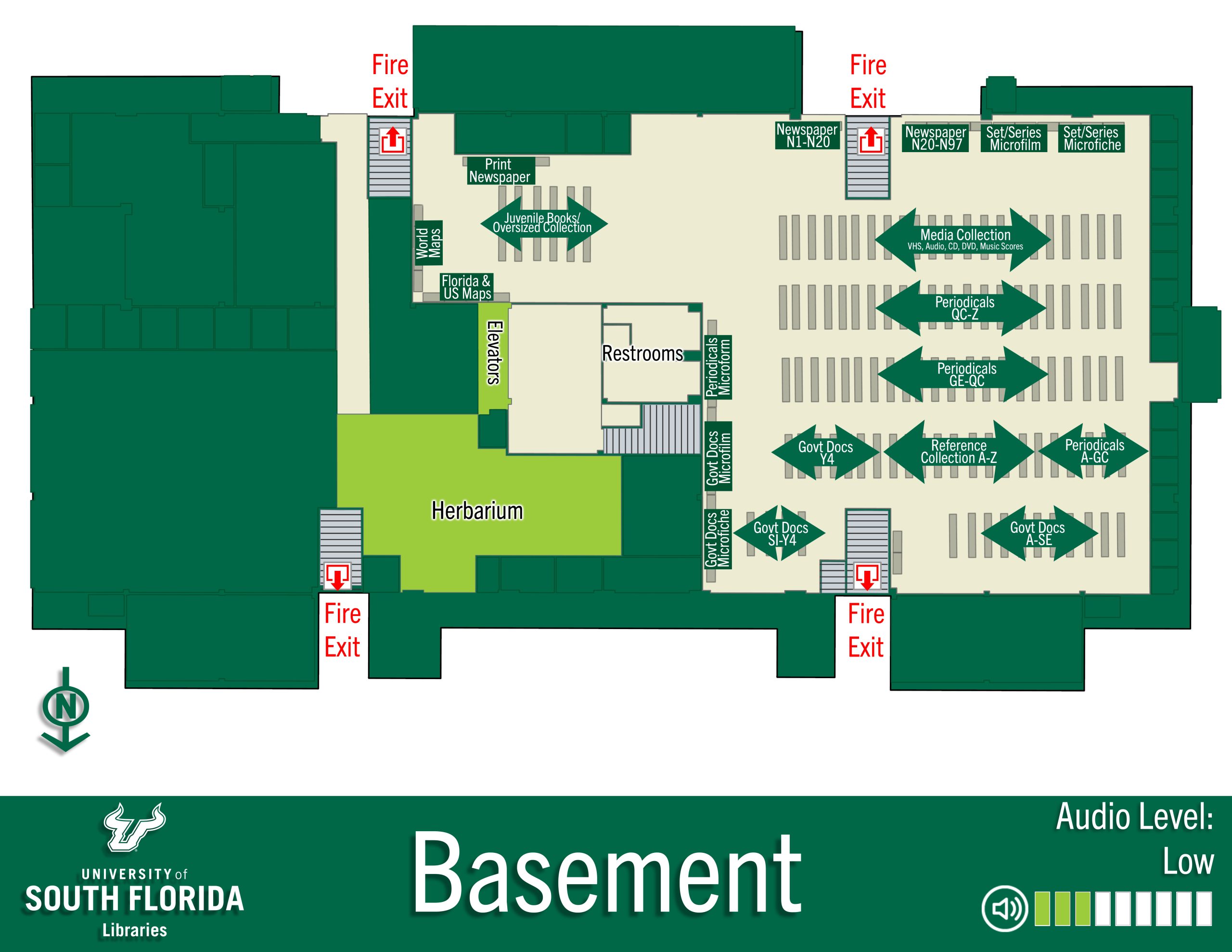 USF Herbarium, Federal and State Government Documents print collections, maps, print periodicals (Magazines/Journals and Newspapers), Reference Annex.