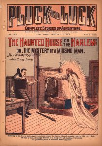 Reading Time: 5 minutesRichard Schmidt, Digitization Coordinator in the Digital Initiatives unit, Special Collections takes us on a Halloweenie journey through the USF Library Special Collections’ spookiest dime novels wit his review of “The Haunted House on the Harlem” from Pluck and Luck issue 1074, dated January 1st, 1919.